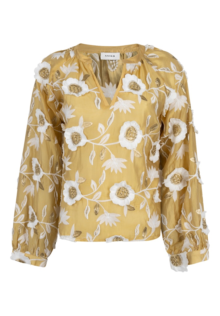 Deze stijlvolle dames top van het merk Aaiko is perfect voor de zomer van 2026. De top heeft een lange mouw en een V-hals, wat zorgt voor een vrouwelijke uitstraling. De gouden kleur geeft een luxe en trendy touch aan de top. Het materiaal van de top bestaat voor 85% uit Lyocell en 15% uit polyamide of nylon, wat zorgt voor een comfortabele en luchtige pasvorm. Deze top is een must-have voor elke vrouw die op zoek is naar een fashionable en tijdloze toevoeging aan haar garderobe.