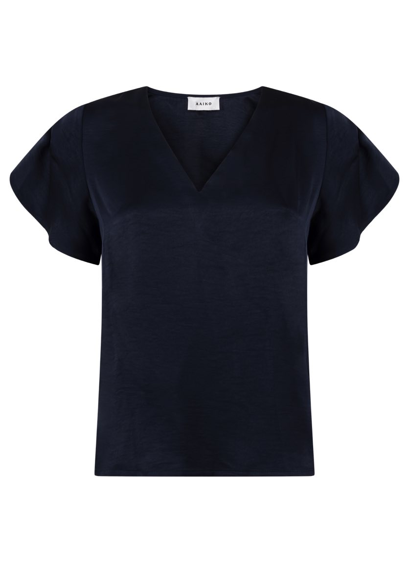 Deze dames top van het merk Aaiko is een must-have voor elke vrouw. De top is uitgevoerd in een prachtige donker blauwe kleur, perfect voor het winterseizoen. De korte mouwen geven de top een speelse en vrouwelijke uitstraling. Met deze top ben je helemaal on-trend in 2025. Een tijdloos item dat niet mag ontbreken in jouw kledingkast.