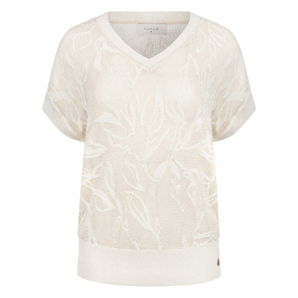 Deze ecrukleurige dames top van NUKUS is perfect voor de zomer. Het vrouwelijke model is voorzien van korte mouwen en een V-hals, wat zorgt voor een elegante uitstraling. De top is gemaakt van hoogwaardig materiaal, bestaande uit 70% viscose, 21% metaal en 9% polyamide, wat zorgt voor een comfortabele pasvorm. De top is ideaal voor verschillende gelegenheden en past perfect bij de merkstijl van NUKUS. Met deze top ben je helemaal klaar voor het zomerseizoen van 2026.