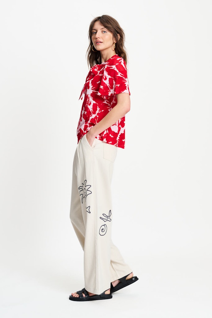 Deze prachtige dames top van het merk Pom is perfect voor de zomer. De top is gemaakt van een luchtige mix van 62% viscose en 38% katoen, waardoor het heerlijk comfortabel draagt op warme dagen. De korte mouwen en vrolijke multicolor print maken deze top helemaal on-trend. Het is een must-have voor elke vrouwelijke garderobe. Deze top is verkrijgbaar in de opvallende kleur rood print en past perfect bij de merkstijl van Pom. Met deze top ben je helemaal klaar voor het zomerseizoen van 2026.
