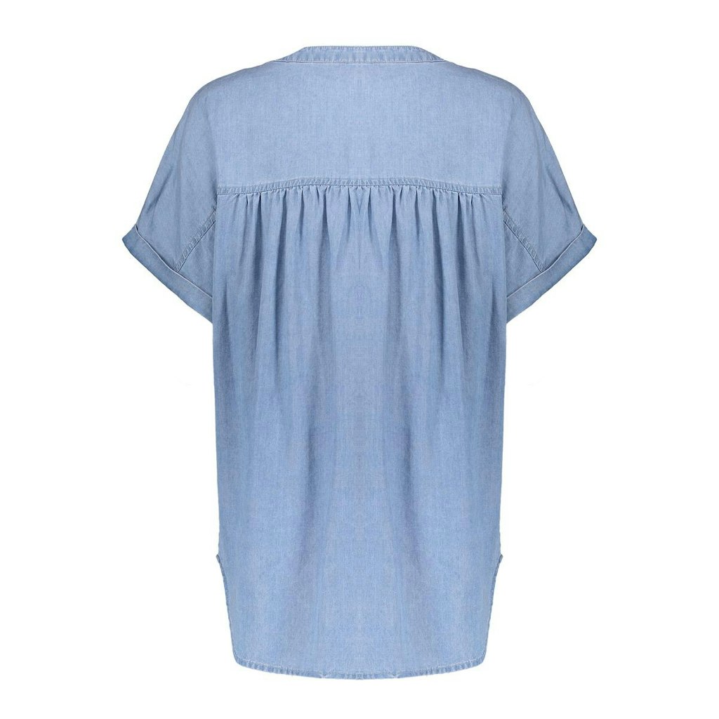 Deze lichtblauwe dames top van het merk Geisha is perfect voor de zomer. Het vrouwelijke design met korte mouwen en V-hals zorgt voor een speelse en stijlvolle look. De top is gemaakt van 100% Lyocell, wat zorgt voor een comfortabele en luchtige pasvorm. De knoopsluiting aan de voorkant geeft de top een extra detail. Met deze top ben je helemaal on-trend en klaar voor het zomerseizoen van 2026.