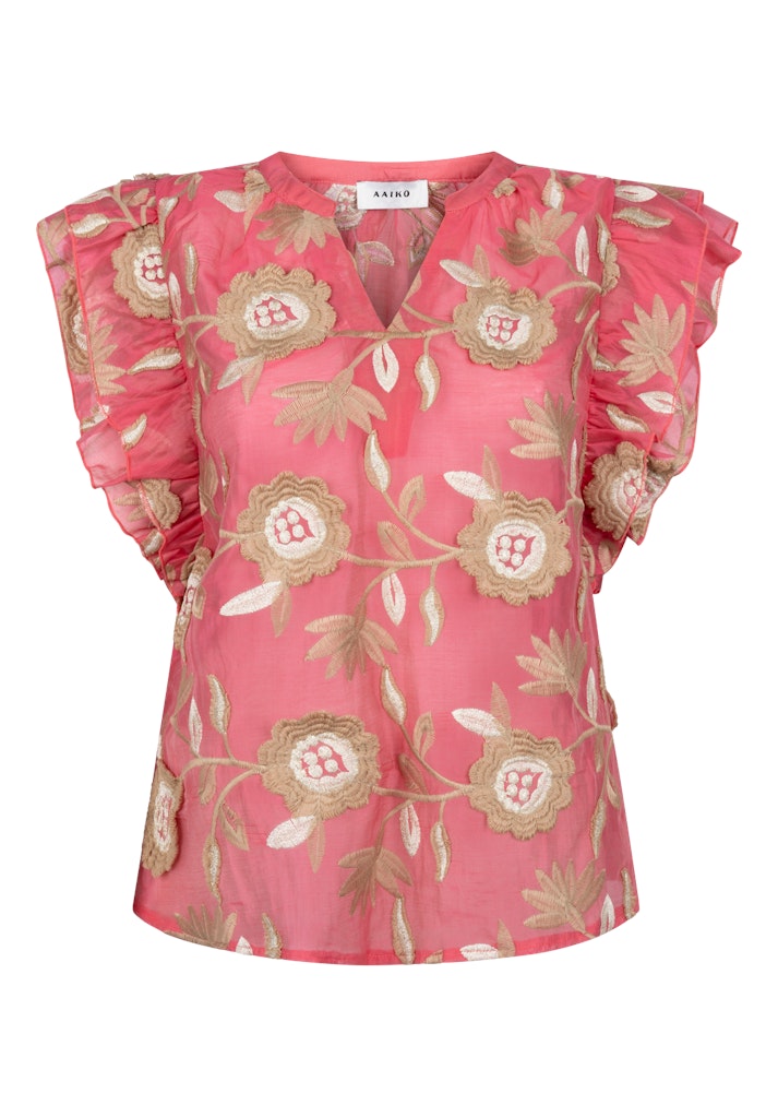 Deze prachtige mouwloze top van het merk Aaiko is perfect voor de zomer. Met zijn vrouwelijke V-hals en opvallende roze print is het een echte eyecatcher. De top is gemaakt van 85% Lyocell en 15% polyamide of nylon, wat zorgt voor een comfortabele en luchtige pasvorm. Het is een tijdloos item dat zeker niet mag ontbreken in de kledingkast van elke vrouw. Of het nu gedragen wordt tijdens een dagje uit of een avondje uit, deze top geeft elke outfit een trendy en stijlvolle touch. Bestel hem nu en geniet nog jarenlang van deze tijdloze top!