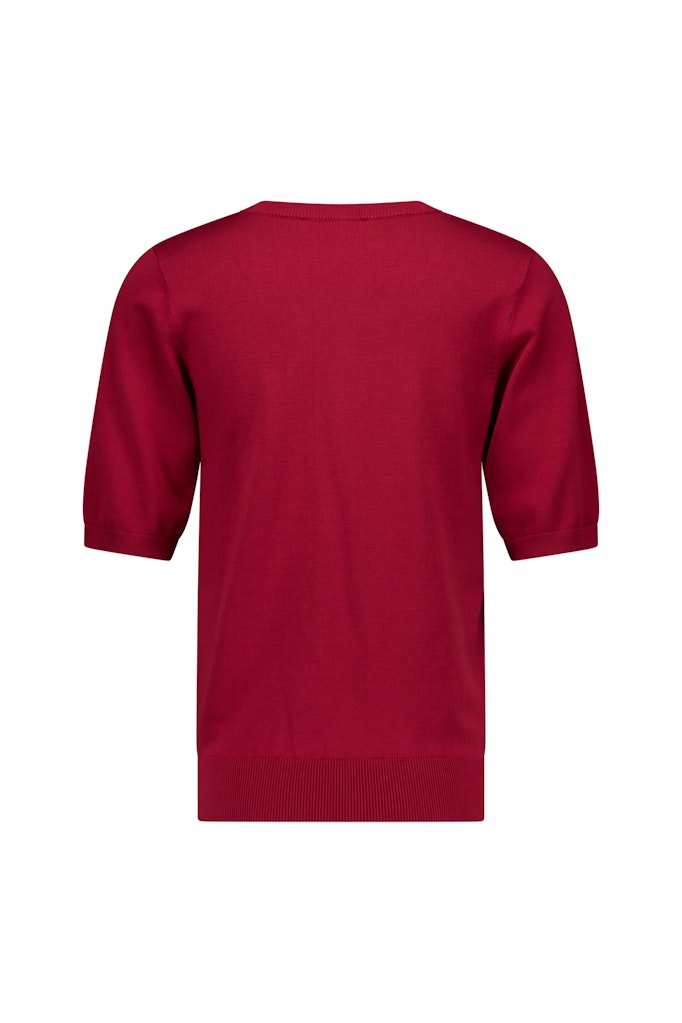 Deze prachtige dames trui van Studio Anneloes is perfect voor de zomer. De trui heeft een V-hals en korte mouwen, waardoor het een vrouwelijke uitstraling heeft. De donker rode kleur geeft de trui een stijlvolle en trendy look die perfect past bij de merkstijl van Studio Anneloes. De trui is gemaakt van 70% viscose en 30% polyamide en is daardoor zacht en comfortabel om te dragen. Het is aan te raden om de trui te laten reinigen in een reinigingsmachine met oplosmiddelen zoals perchloorethyleen of koolwaterstoffen. Met deze rode trui van Studio Anneloes ben je helemaal klaar voor de zomer van 2026.