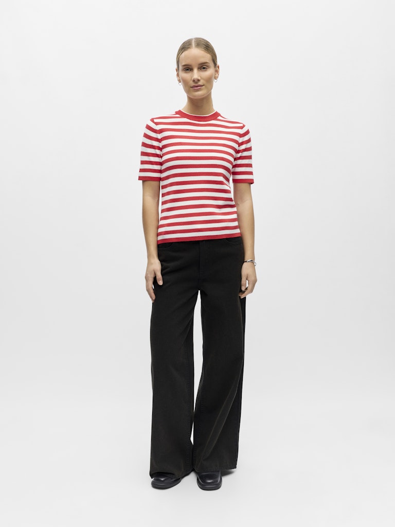 Deze stijlvolle dames trui van het merk Object is perfect voor de zomer. Het vrouwelijke design en de opvallende rode kleur, genaamd Poinsettia/Cloud dancer, zorgen voor een trendy look. De trui is gemaakt van hoogwaardige materialen en is geschikt voor liggend drogen in de schaduw. Met deze trui ben je helemaal klaar voor het jaar 2026. Laat jezelf stralen in deze must-have trui van Object.