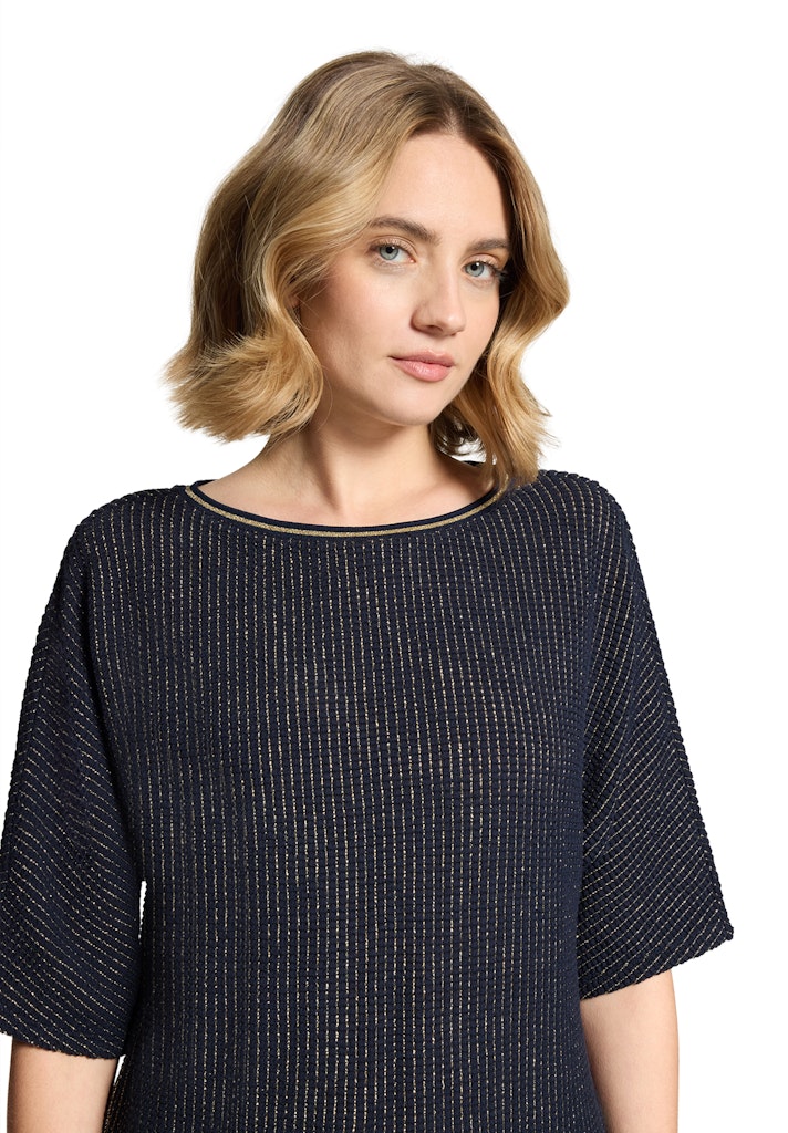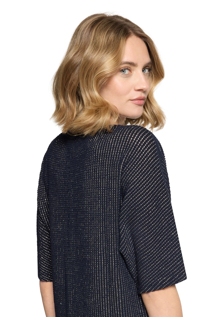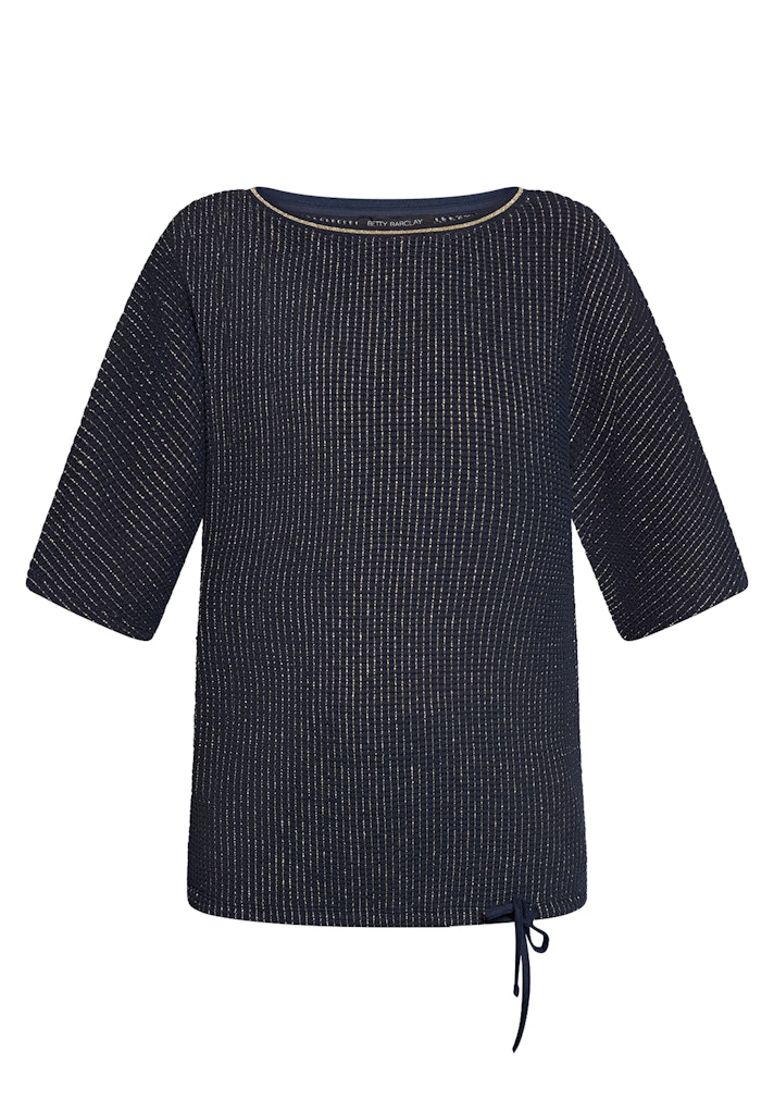 Deze prachtige dames trui van het merk Betty Barclay is een must-have voor elke zomerse garderobe. De korte mouwen geven de trui een luchtige en vrouwelijke uitstraling, perfect voor warme dagen. De trui is uitgevoerd in de kleur Dark Sky, waardoor het gemakkelijk te combineren is met verschillende outfits. De stijlvolle en tijdloze uitstraling van Betty Barclay komt ook in deze trui naar voren, waardoor het een echte eyecatcher is. Met deze trui ben je helemaal klaar voor het zomerseizoen van 2026.