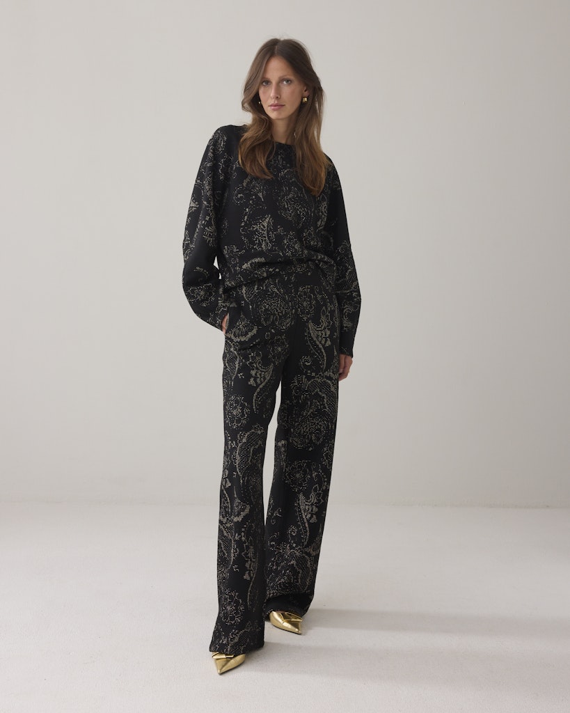 Deze prachtige dames trui van het merk Summum is een must-have voor elke vrouw. Met lange mouwen en een ronde hals is deze trui perfect voor de winter. De zwarte print geeft de trui een trendy uitstraling en past bij elke outfit. De trui is gemaakt voor dames en is geschikt voor het jaar 2025. De stijlvolle en tijdloze uitstraling van Summum komt duidelijk naar voren in deze trui, waardoor je er gegarandeerd fashionable uitziet.