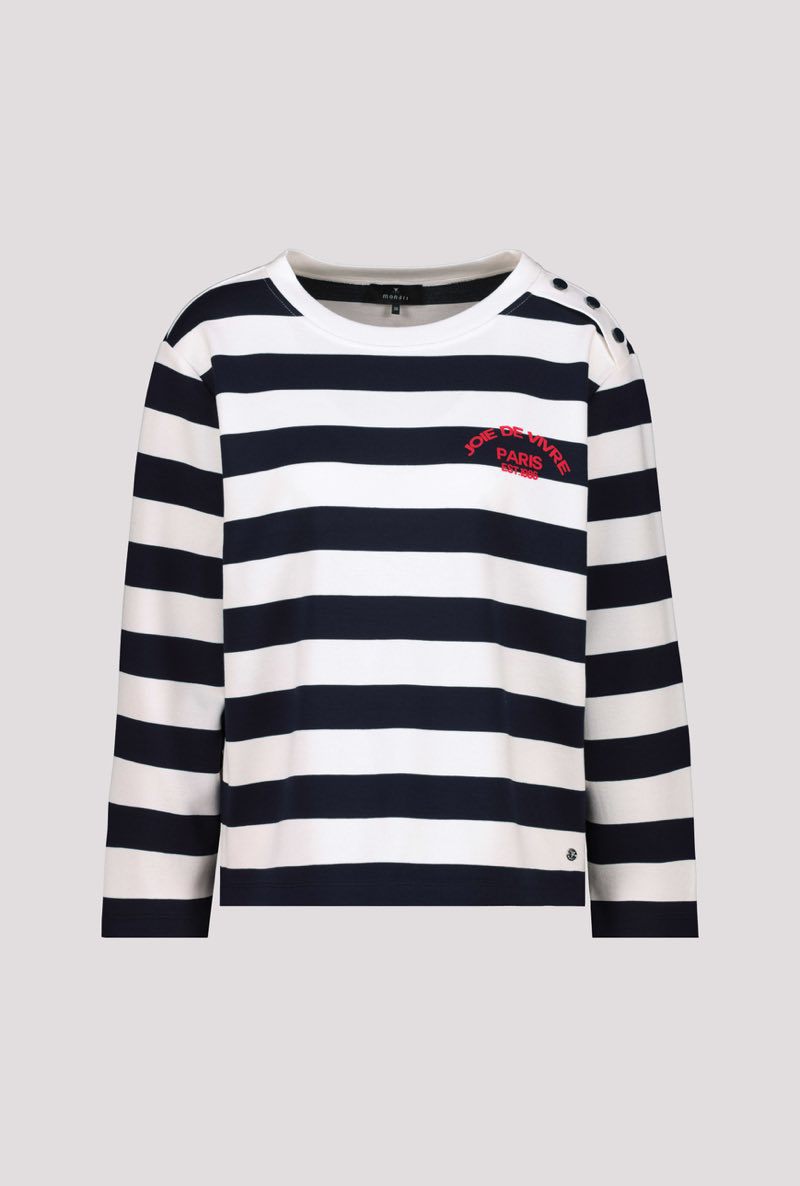 De Monari Dames Trui is een must-have voor elke vrouw die op zoek is naar een stijlvolle en comfortabele trui voor de zomer. Het Duitse merk Monari staat bekend om haar unieke en eigentijdse stijl, die perfect past bij de moderne vrouw. Deze trui is gemaakt van hoogwaardig materiaal en heeft een tijdloos design met een marine Ringel kleur. Het is een tijdloos item dat je nog vele zomers kunt dragen. Met deze trui van Monari ben je verzekerd van een trendy look en ultiem draagcomfort. Een echte aanwinst voor je zomergarderobe!