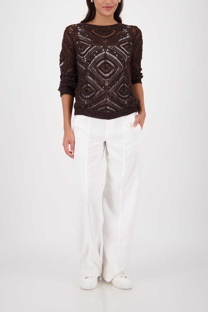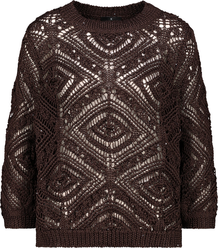 Deze dames trui van het merk Monari is perfect voor de zomer. Het vrouwelijke design en de bruine kleur passen helemaal bij de stijl van Monari. De trui is gemaakt van 60% katoen en 40% polyester en moet met de hand gewassen worden volgens de wasvoorschriften. Dit zorgt ervoor dat de trui lang mooi blijft en perfect is voor de warmere dagen. De donkerbruine kleur, ook wel dark chocolate genoemd, is helemaal in lijn met de trendkleuren van 2026. Met deze trui ben je dus niet alleen modieus, maar ook nog eens voorbereid op de toekomst.