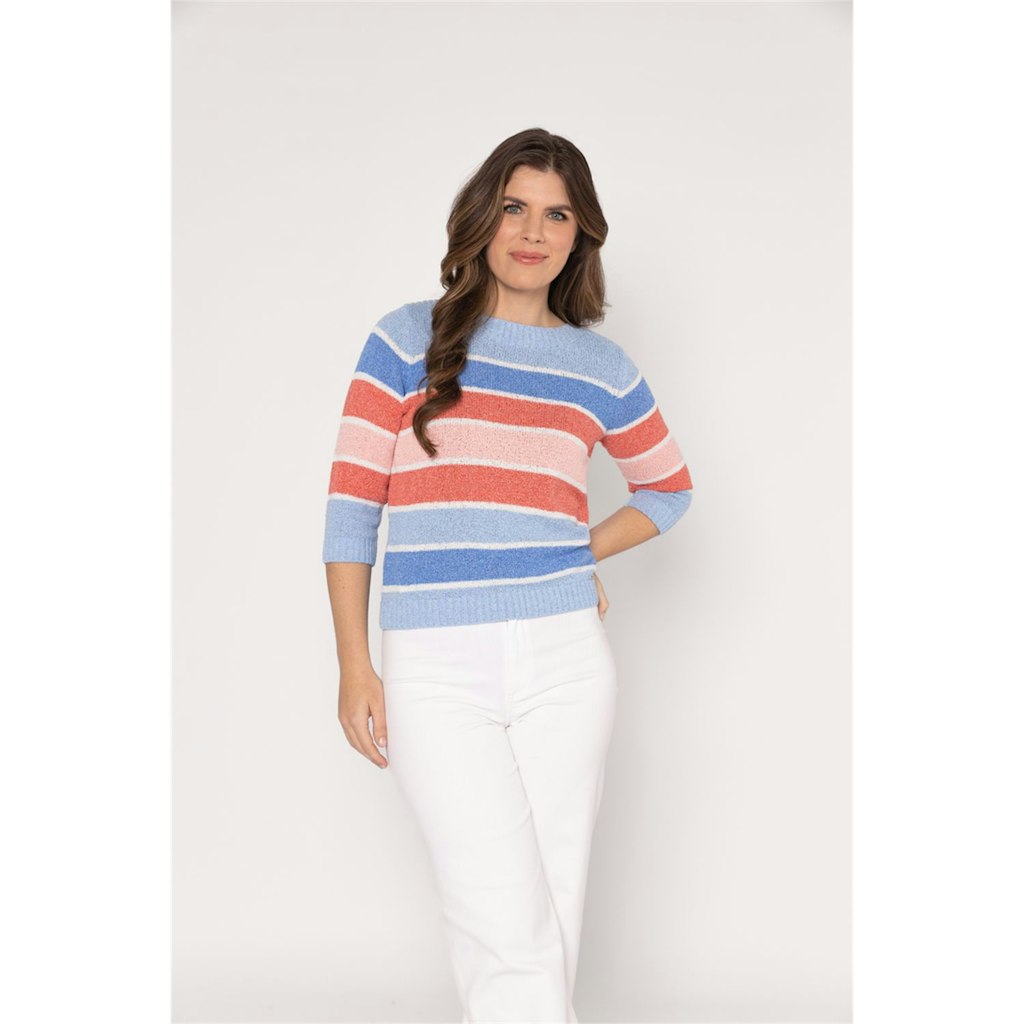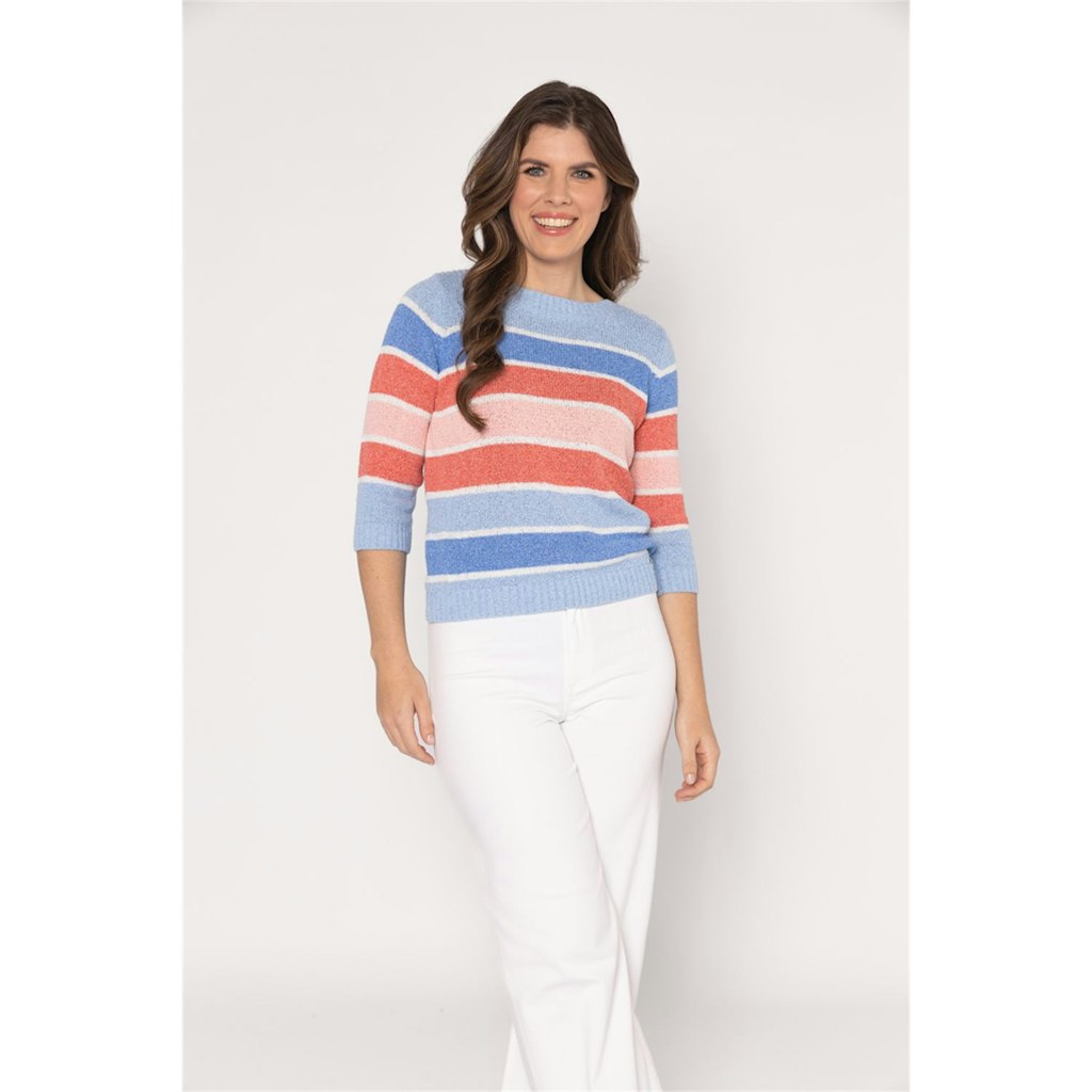 Deze prachtige dames trui van Roberto Sarto is een must-have voor elke vrouwelijke fashionista. De trui heeft een ronde hals en half lange mouwen, waardoor het perfect is voor de zomer. De blauwe print geeft de trui een speelse en trendy uitstraling, passend bij de merkstijl van Roberto Sarto. De trui is gemaakt van hoogwaardig materiaal en kan gewassen worden op 30°C fijne was of wolwas. Met deze multicolor trui ben je helemaal klaar voor het seizoen van 2026. Laat je verrassen door de comfortabele pasvorm en de stijlvolle uitstraling van deze Roberto Sarto trui.