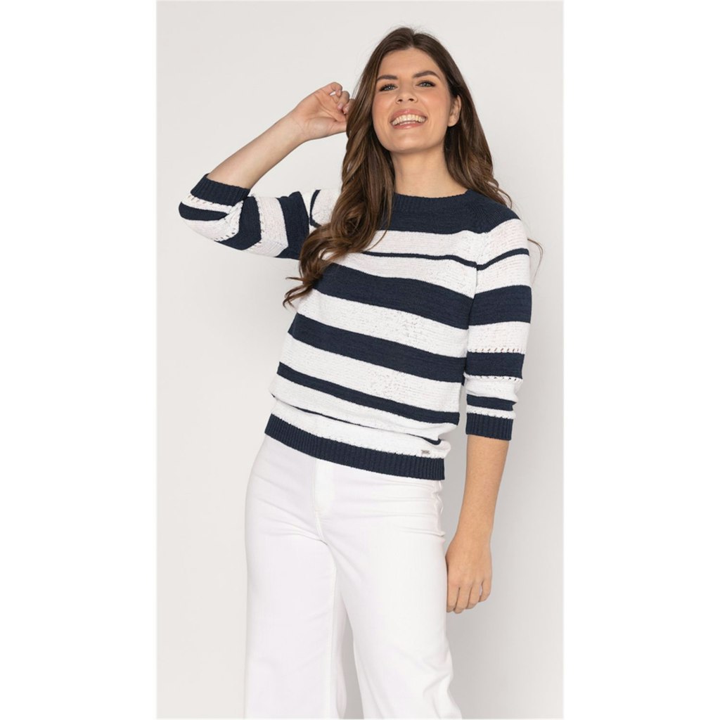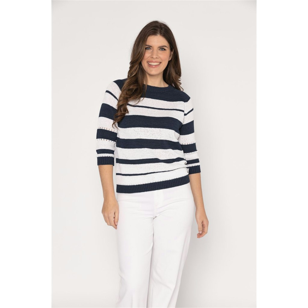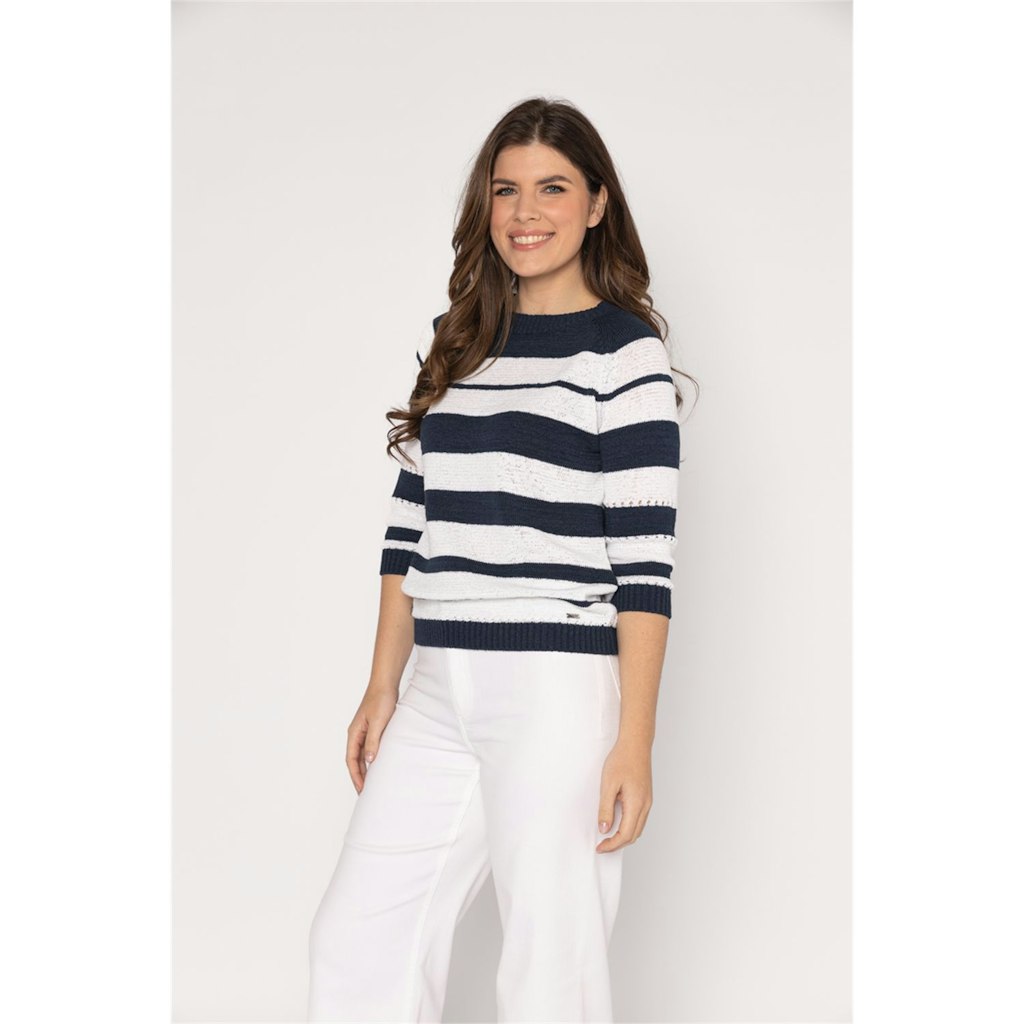 Deze blauw geprinte dames trui van het merk Roberto Sarto is perfect voor de zomer van 2026. De trui heeft een vrouwelijke pasvorm en een halflange mouwlengte, waardoor het comfortabel en luchtig is tijdens warme dagen. De multicolor print geeft de trui een speelse en trendy uitstraling, passend bij de merkstijl van Roberto Sarto. De trui is gemaakt van hoogwaardig materiaal en kan gewassen worden op 30°C fijne was/wolwas. Een must-have voor elke vrouw die op zoek is naar een stijlvolle en comfortabele trui voor de zomer.
