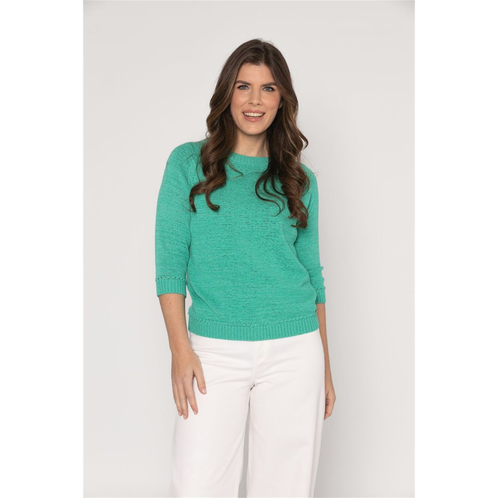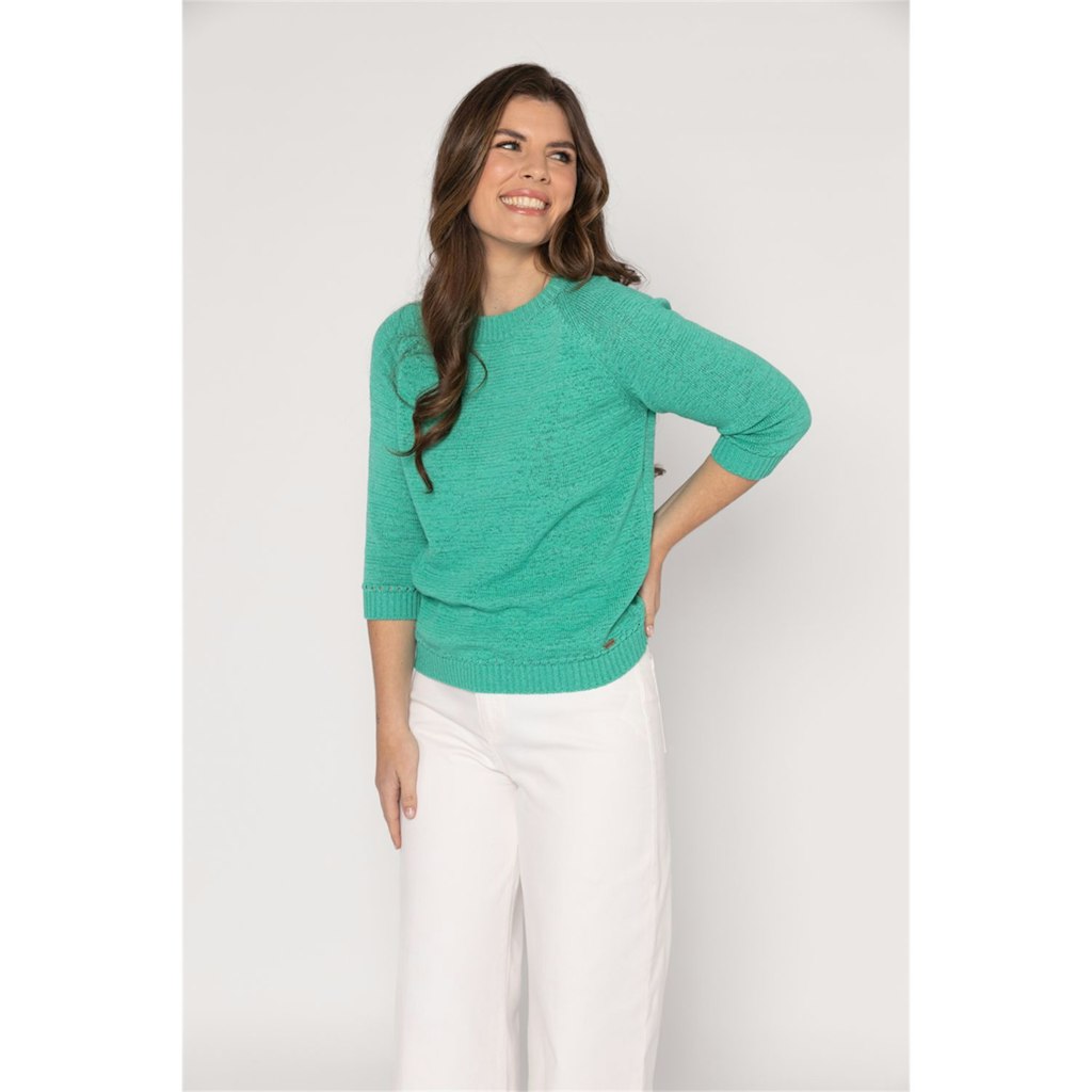 Deze lichtgroene dames trui van het merk Roberto Sarto is perfect voor de zomer. De trui heeft een vrouwelijke pasvorm en half lange mouwen. De kleur groen zorgt voor een frisse en zomerse uitstraling. De trui is gemaakt van hoogwaardige materialen en is gemakkelijk te wassen op 30°C fijne was of wolwas. Met deze trendy trui ben je helemaal klaar voor het jaar 2026.
