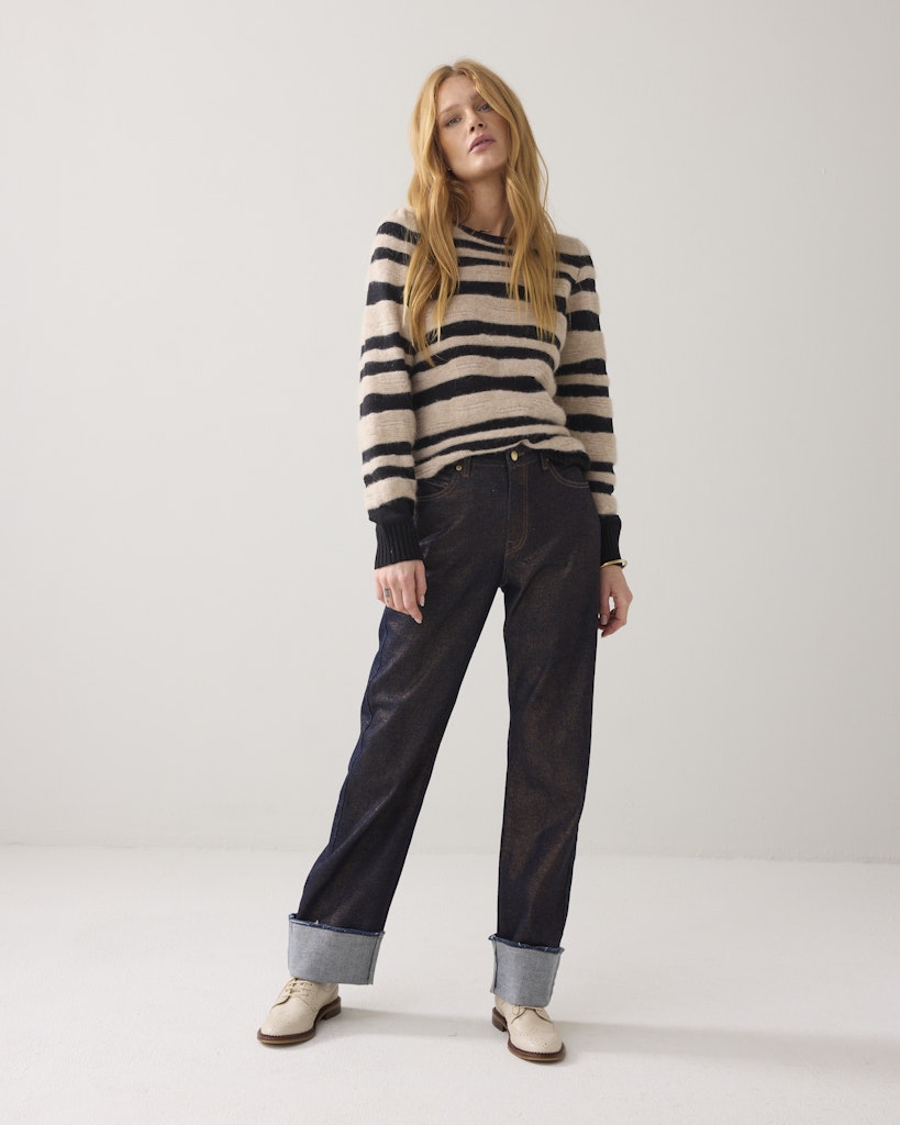 Deze dames trui van het merk Summum is perfect voor de winter van 2025. De trui heeft een ronde hals en lange mouwen, waardoor je lekker warm blijft tijdens koude dagen. De zwarte print geeft de trui een trendy uitstraling en past perfect bij de merkstijl van Summum. Deze trui is geschikt voor vrouwen en is een must-have voor het komende winterseizoen.