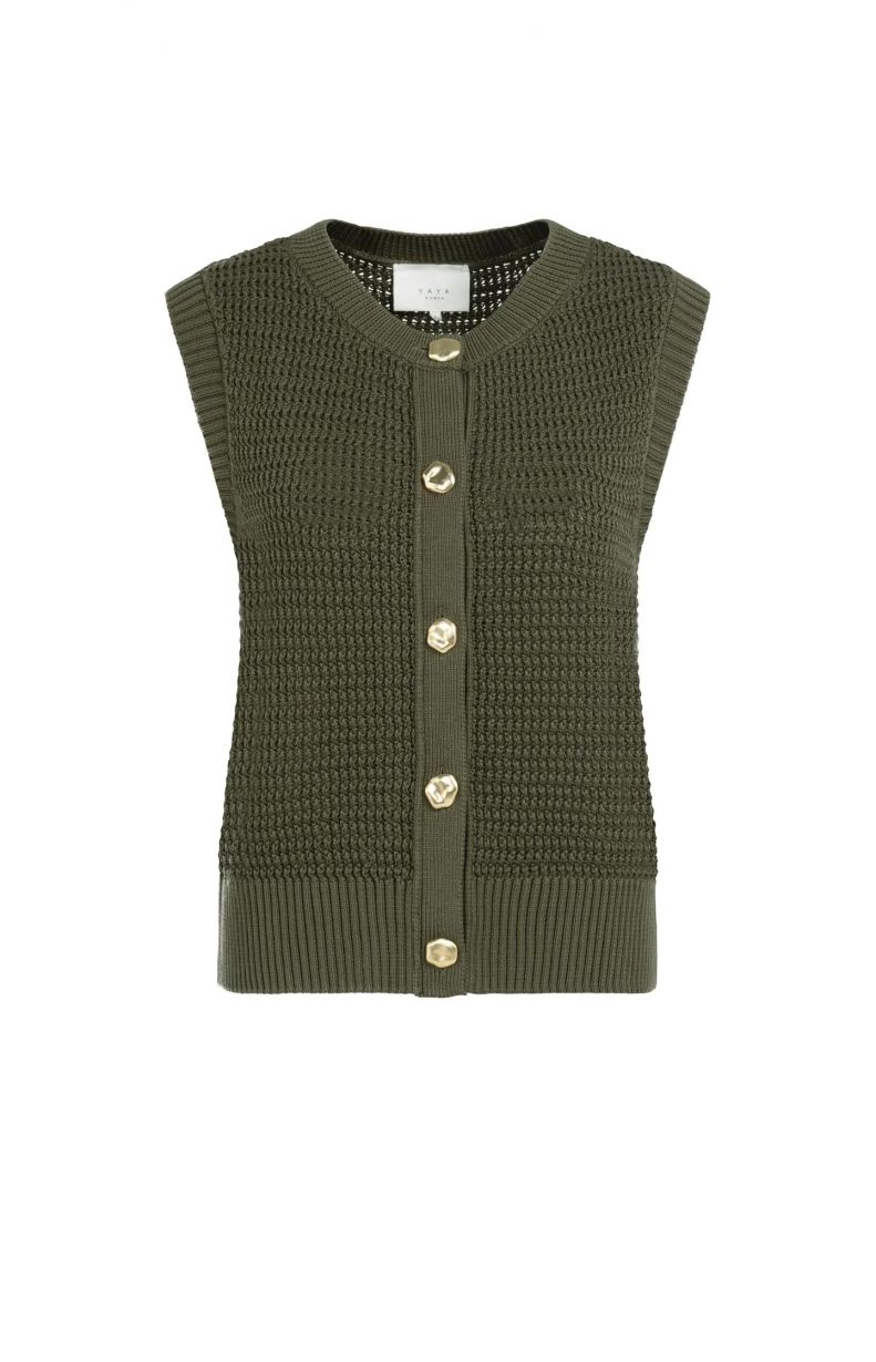Het Yaya dames vest is een must-have voor de zomer van 2026. Dit vest is gemaakt van hoogwaardige materialen en heeft een stijlvolle uitstraling die perfect past bij de merkstijl van Yaya. Het vest is speciaal ontworpen voor dames en heeft een trendy army green kleur. Het is de ideale toevoeging aan elke zomeroutfit en zorgt voor een comfortabele en modieuze look. Met het Yaya dames vest ben je helemaal klaar voor het nieuwe seizoen.