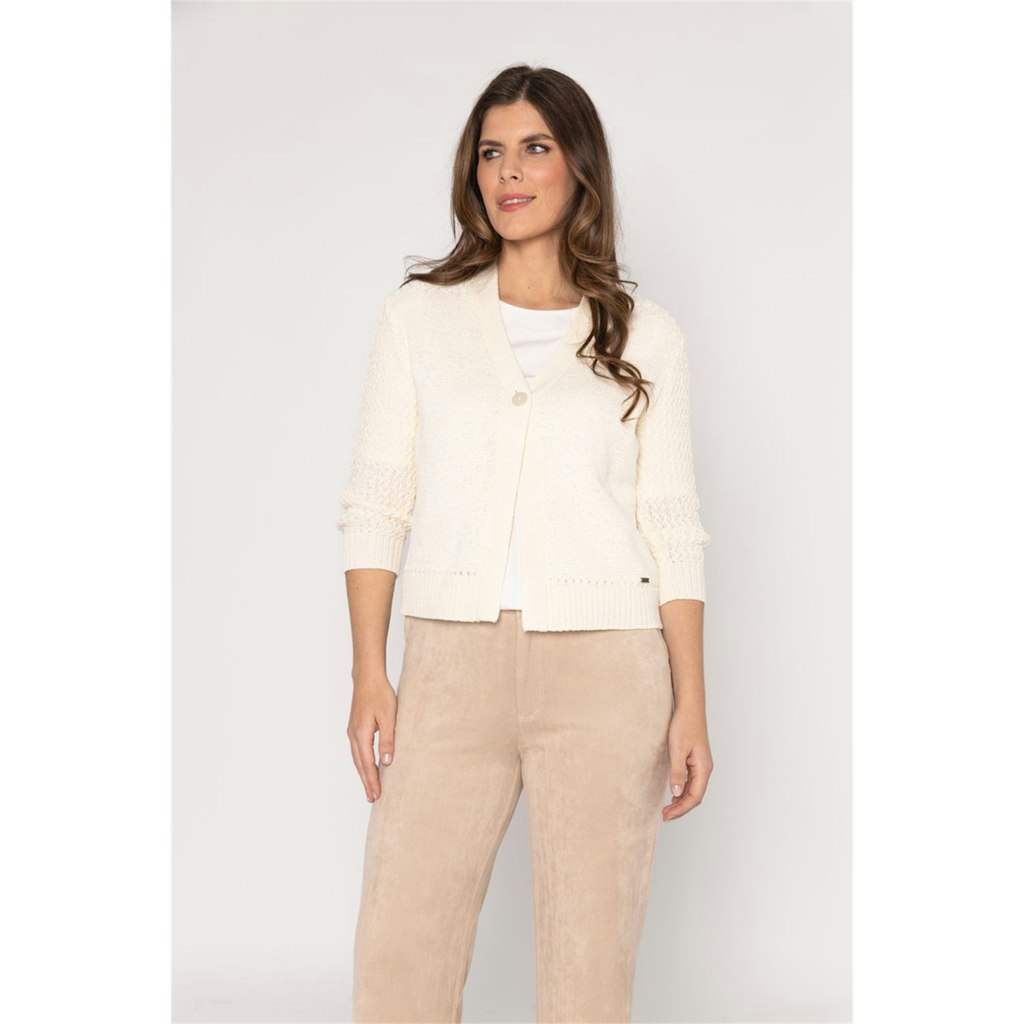 Het ecru kleurige dames vest van Roberto Sarto is een must-have voor de zomer van 2026. Met zijn half lange mouwen en grijze accenten past dit vest perfect bij de vrouwelijke merkstijl van Roberto Sarto. Het vest is gemaakt van hoogwaardige materialen en kan gewassen worden op 30°C fijne was/wolwas. Hierdoor blijft de kwaliteit behouden en kun je er nog jarenlang van genieten. Dit vest is geschikt voor elke gelegenheid en geeft je outfit een stijlvolle touch. Laat jezelf stralen in dit tijdloze en comfortabele dames vest van Roberto Sarto.