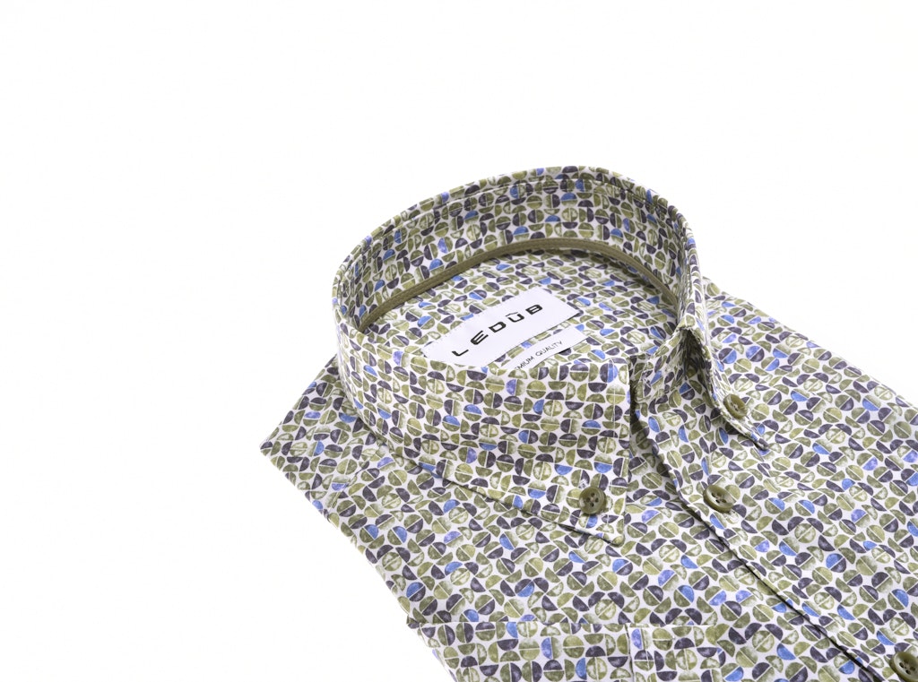 Dit Ledub heren overhemd is perfect voor de zomerse dagen. Het moderne fit model zorgt voor een comfortabele pasvorm en de korte mouwen maken het geschikt voor warmere temperaturen. Het overhemd is gemaakt van 65% polyester en 35% katoen, waardoor het licht en ademend is. De kleur van het overhemd is een combinatie van middengroen (550) en licht groen (535), wat zorgt voor een frisse en zomerse uitstraling. De wasvoorschriften voor dit overhemd zijn drijfnat hangend drogen, wat ervoor zorgt dat het overhemd zijn vorm behoudt. Met dit Ledub overhemd ben je klaar voor de zomer van 2026.