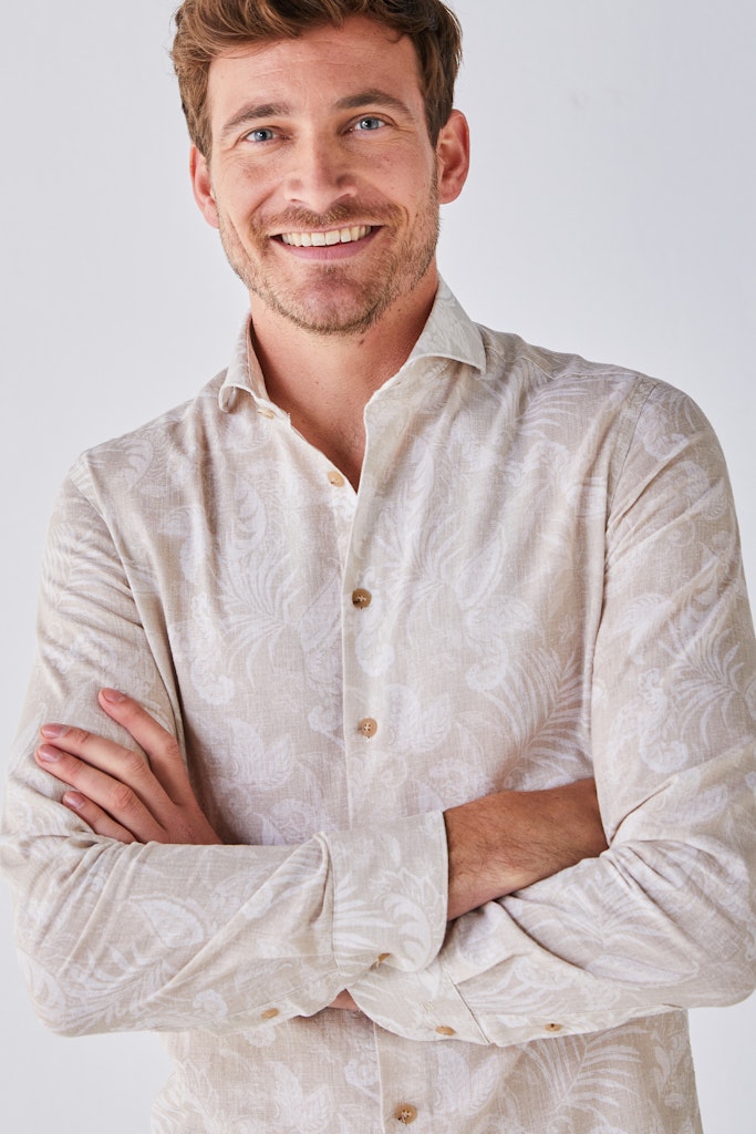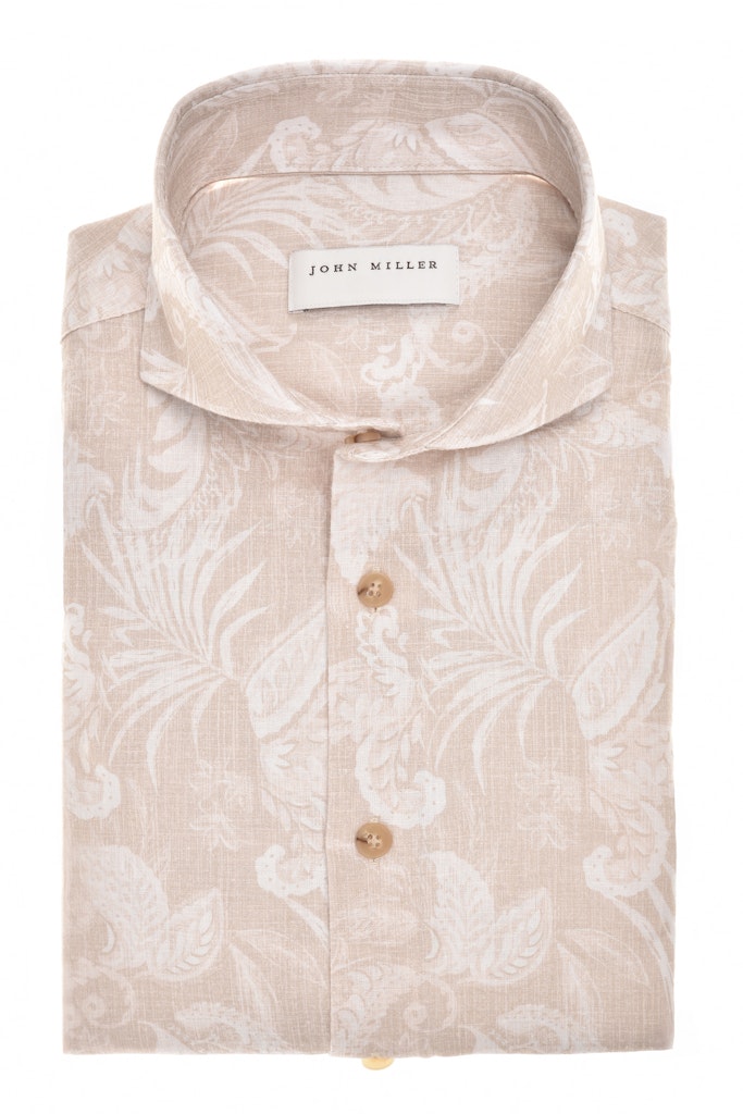 Dit lichtbruine John Miller heren overhemd is perfect voor de zomer. Het overhemd is gemaakt van een mix van 52% vlas of linnen en 48% katoen, waardoor het licht en ademend is. Het overhemd heeft een mannelijke uitstraling en past perfect bij de merkstijl van John Miller. Het is een tijdloos item dat zowel casual als zakelijk gedragen kan worden. De kleur, lichtbruin 610, is een mooie toevoeging aan elke zomergarderobe en past goed bij bruine accessoires. Het overhemd kan het beste drijfnat hangend gedroogd worden om de kwaliteit van het materiaal te behouden. Met dit overhemd ben je helemaal klaar voor de zomer van 2026.
