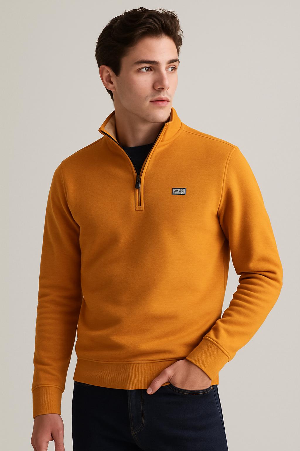 Deze oranje heren schipperstrui van N.Z.A. is een must-have voor de winter van 2025. De trui is gemaakt van hoogwaardig materiaal en heeft een lange mouw en een half zip hals met rits. Hierdoor kun je de trui gemakkelijk aanpassen aan de temperatuur. De schipperstrui is perfect voor mannen die op zoek zijn naar een stijlvolle en comfortabele trui. De kleur en het model passen perfect bij de merkstijl van N.Z.A. en maken deze trui een echte eyecatcher. Of je nu gaat voor een casual of meer geklede look, met deze schipperstrui zit je altijd goed.