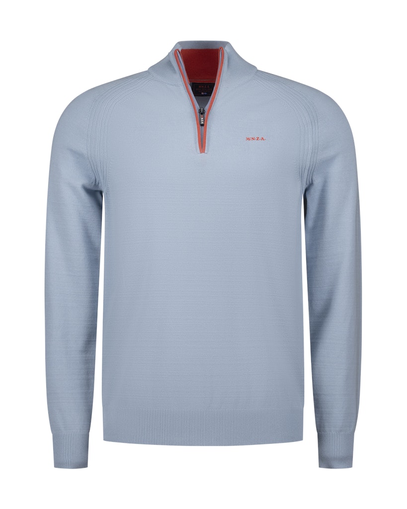 Deze lichtblauwe schipperstrui van N.Z.A. is een must-have voor elke man in de zomer. Het model is speciaal ontworpen voor heren en heeft een stoere, mannelijke uitstraling. De trui is gemaakt van 85% katoen, 8% polyamide en 7% vlas of linnen, waardoor hij comfortabel en ademend is voor warme zomerdagen. De rits sluiting geeft de trui een sportieve touch en maakt hem gemakkelijk aan en uit te trekken. De blauwe kleur is tijdloos en past bij elke outfit. Met deze schipperstrui ben je helemaal klaar voor de zomer van 2026.