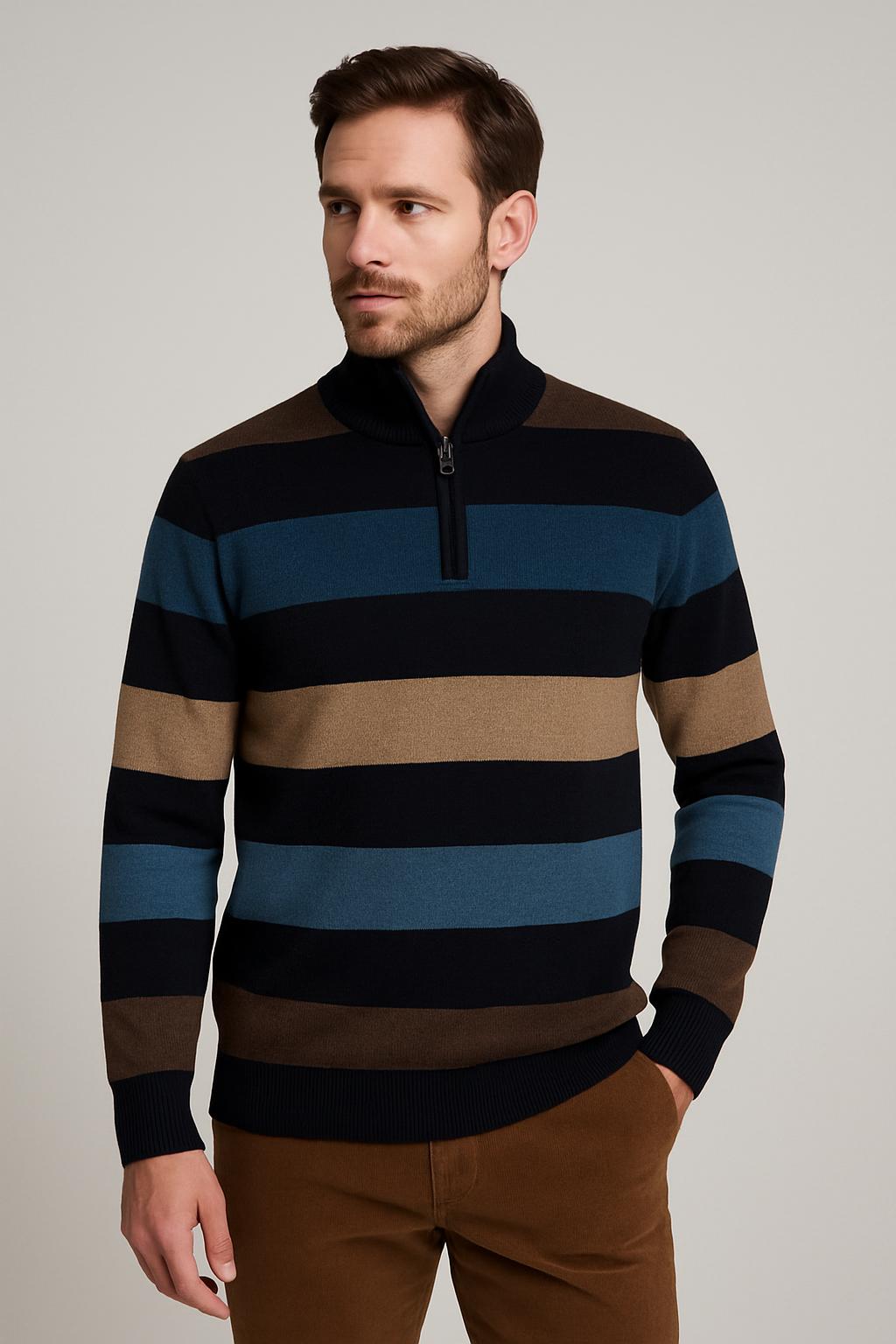 Deze stijlvolle heren trui van Baileys is perfect voor de winter van 2025. De lange mouwen en de half zip hals zorgen voor een comfortabele pasvorm en houden je warm tijdens koude dagen. De blauwe print geeft de trui een trendy uitstraling en past perfect bij de merkstijl van Baileys. Een must-have voor elke man die op zoek is naar een warme en modieuze trui voor het winterseizoen.