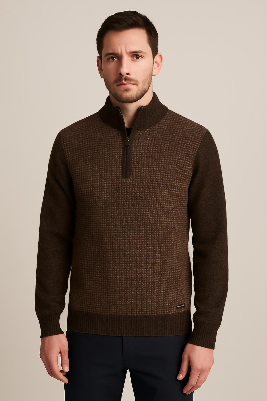 Deze stijlvolle heren trui van het merk Baileys is perfect voor de winter van 2025. De trui heeft een warme bruine print en een comfortabele half zip hals. De lange mouwen zorgen voor extra warmte en maken deze trui ideaal voor de koude winterdagen. De trui is speciaal ontworpen voor heren en past perfect bij de stijl van het merk Baileys. Met deze trui ben je niet alleen modieus, maar ook heerlijk warm gekleed tijdens het winterseizoen.